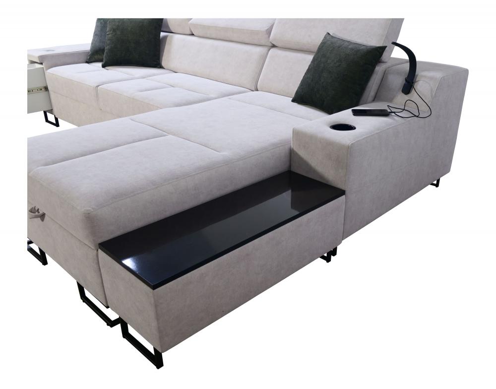 Introducing the ALICANTE I MINI modern corner sofa, a perfect blend of contemporary design and unparalleled functionality for your living room. The corner sofa shown in the photo is right-hand facing. This versatile piece of furniture is designed to offer maximum comfort and convenience, transforming your space into a hub of relaxation and style.