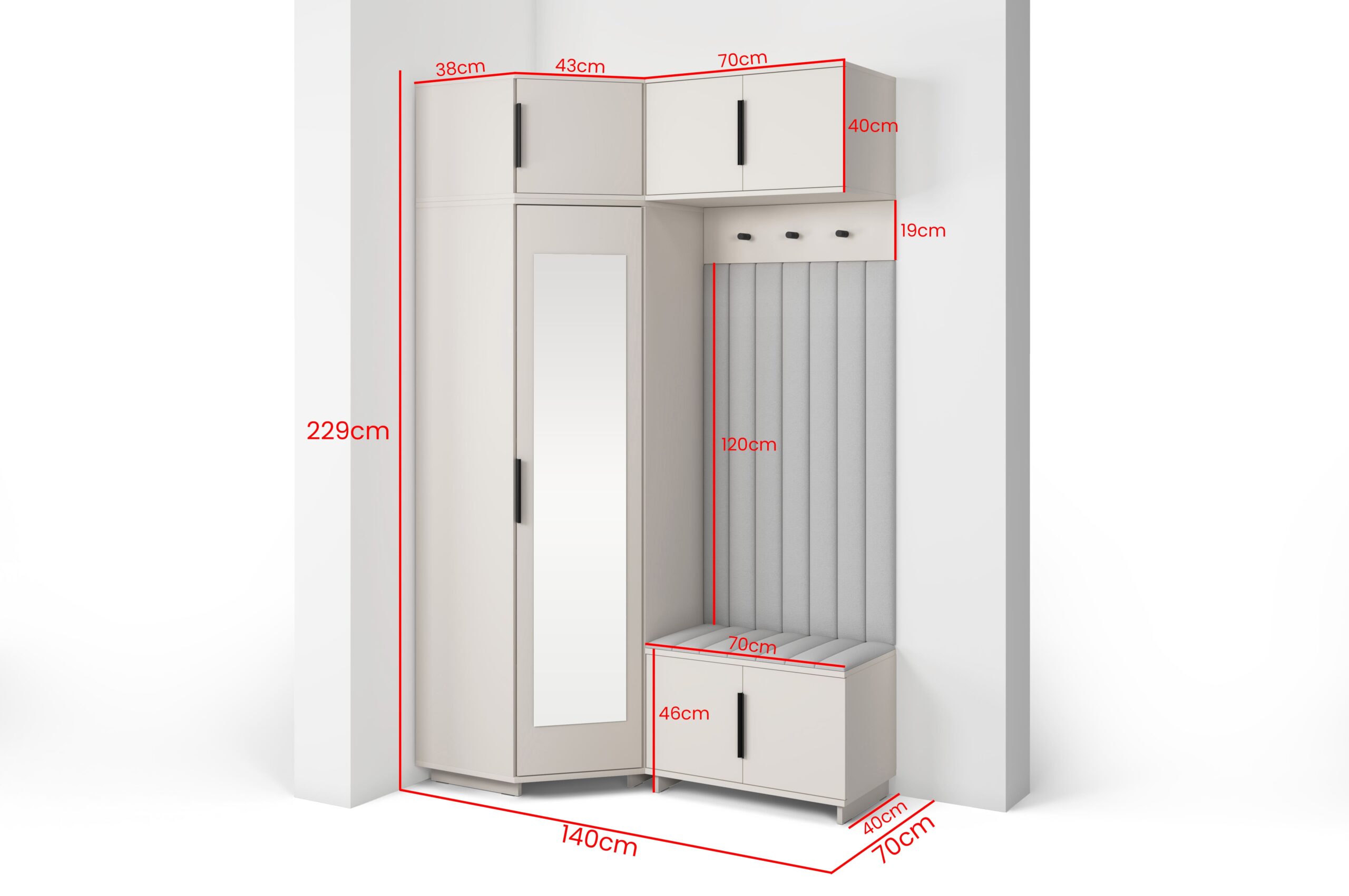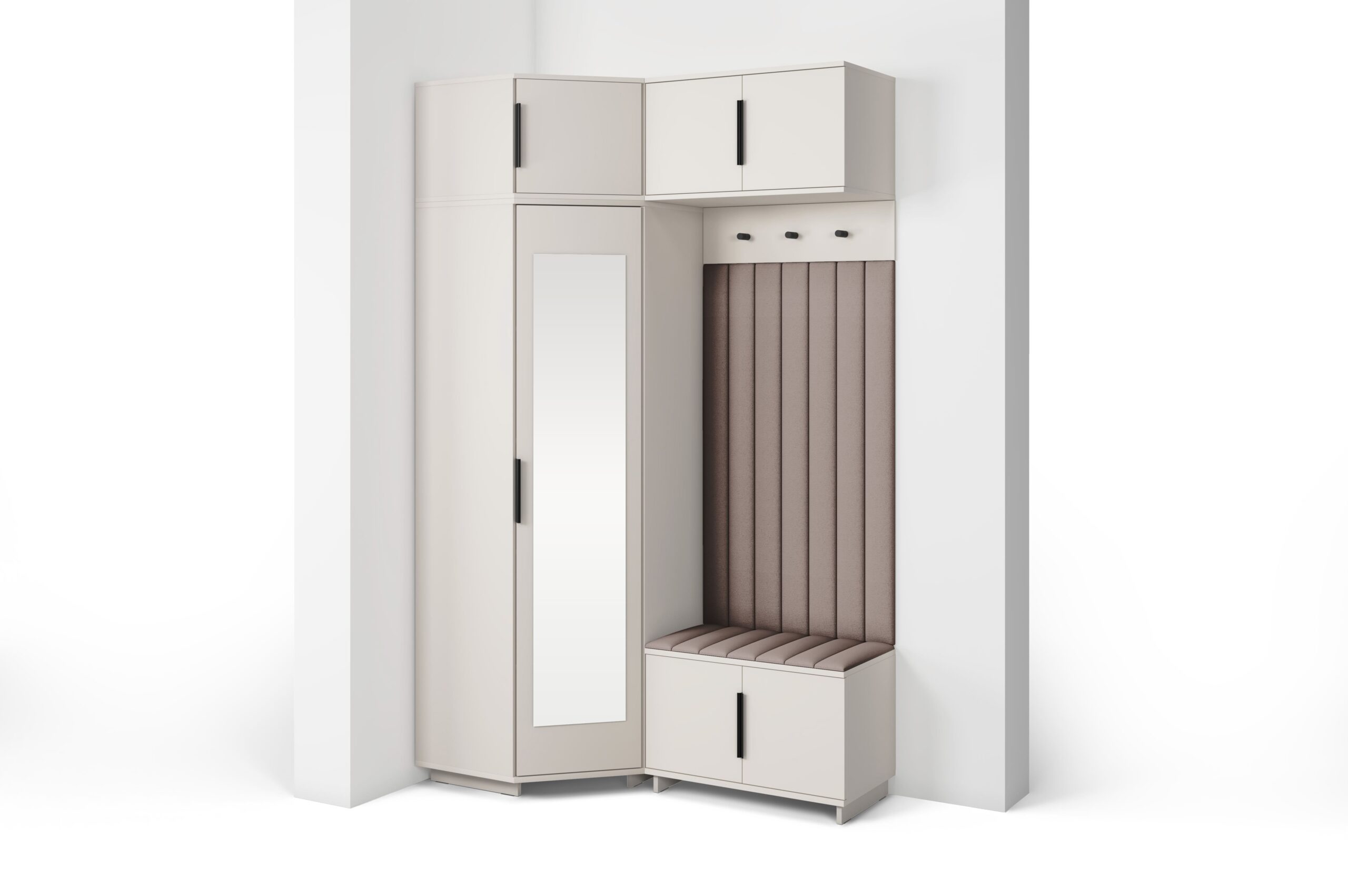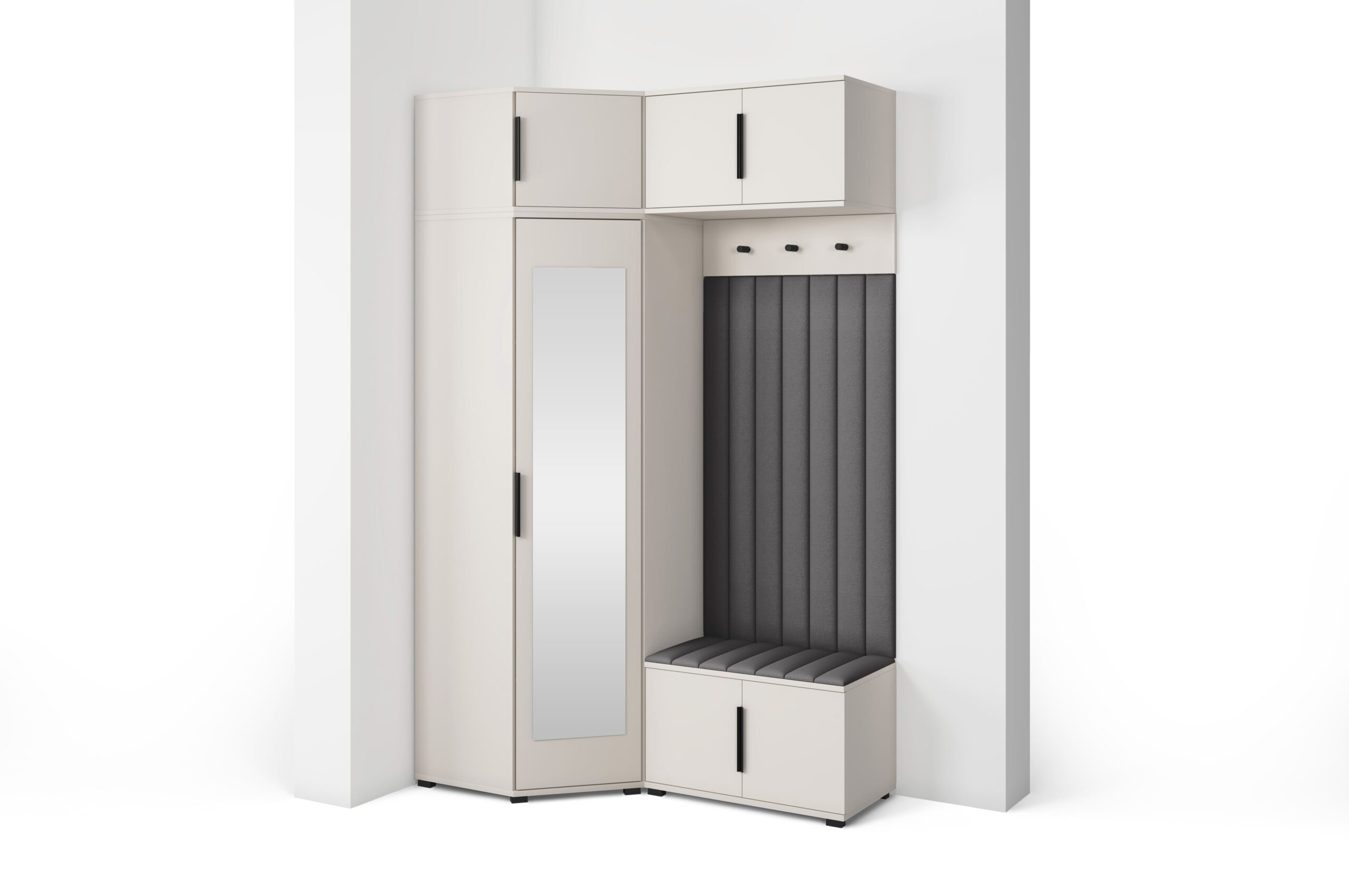 Modern hallway furniture set in Cashmere with upholstered Trinity panels