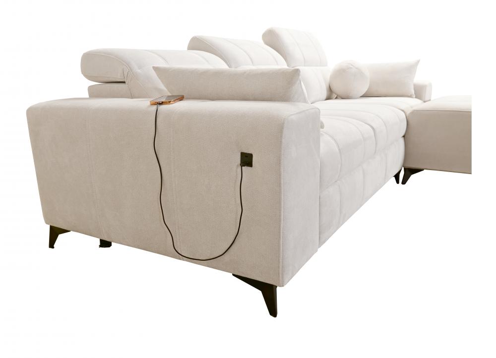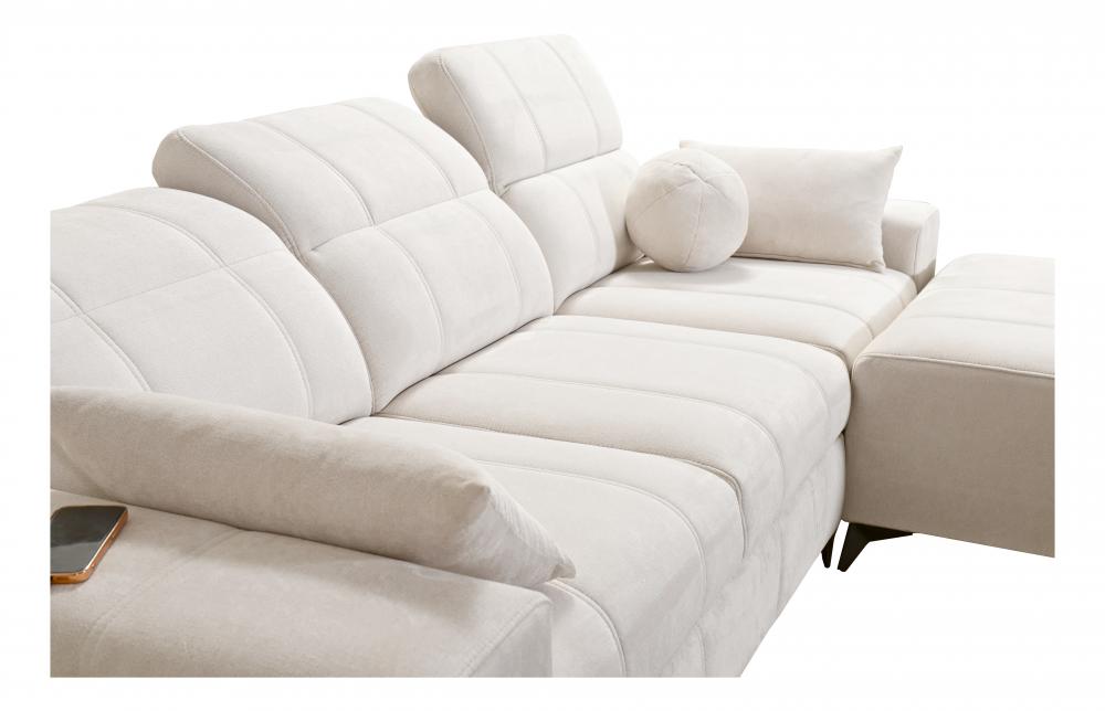Designed for comfort and versatility, the DAFNE I Corner Sofa comes equipped with 3 adjustable headrests, allowing you to customize your seating experience. A practical storage compartment is integrated, perfect for stowing away bedding or other essentials. Stay connected with a convenient USB port, available in black or silver, ensuring your devices are always charged.