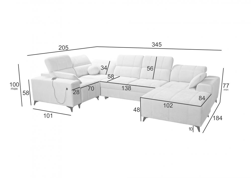 - Sleeping Area (Optional): 268 cm x 127 cm. The sleeping surface can optionally be finished in a color matching the main sofa fabric.