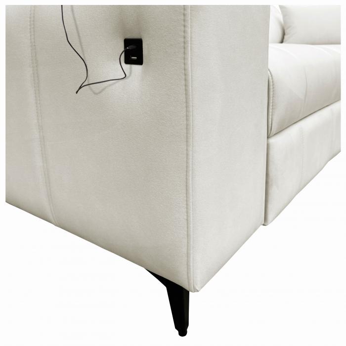 The DAFNE modern sofa boasts three adjustable headrests, allowing you to find your perfect comfort position. It also features a convenient integrated USB A+C port, keeping your devices charged and within reach. With its pull-out sleeping surface, this sofa easily transforms into a comfortable bed for guests.