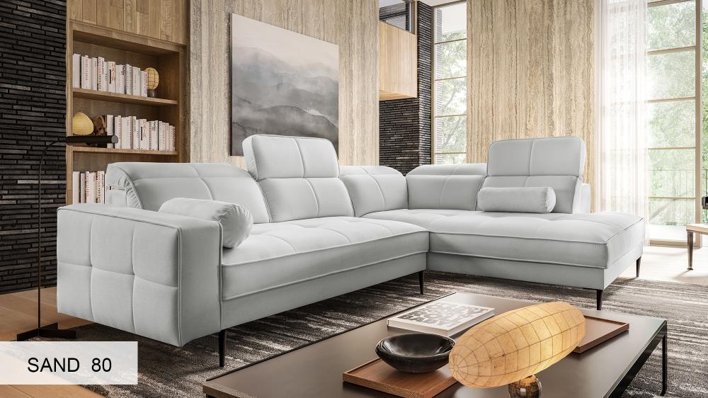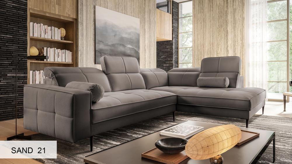 Transform your living area with the exquisite DIVANO corner sofa, a masterpiece of modern design and comfort. This elegant and versatile sofa, shown here in a right-sided configuration, is designed to be a stunning centerpiece in any contemporary home. Its sleek lines and thoughtful features make it an ideal choice for those seeking both style and functionality.