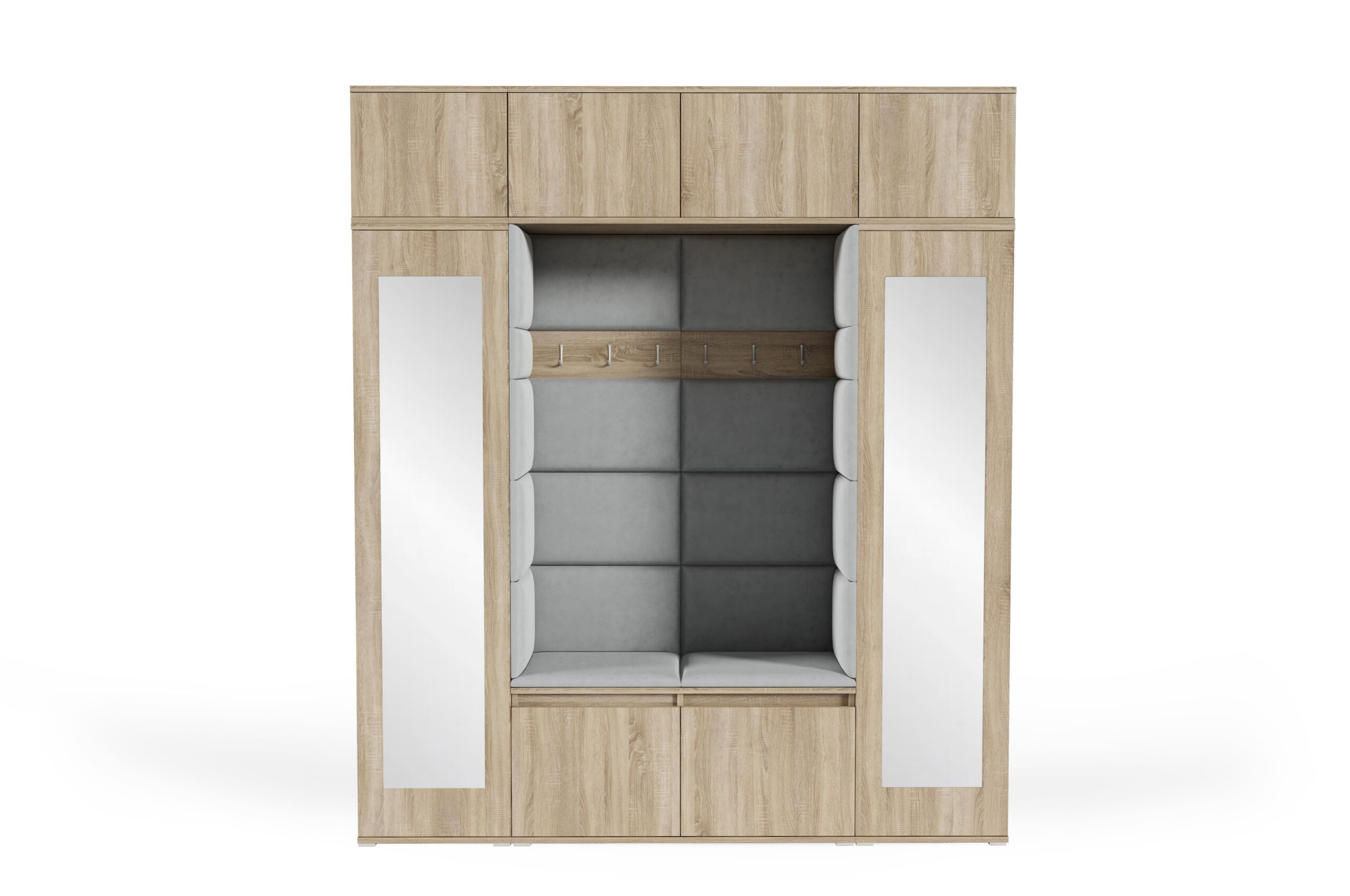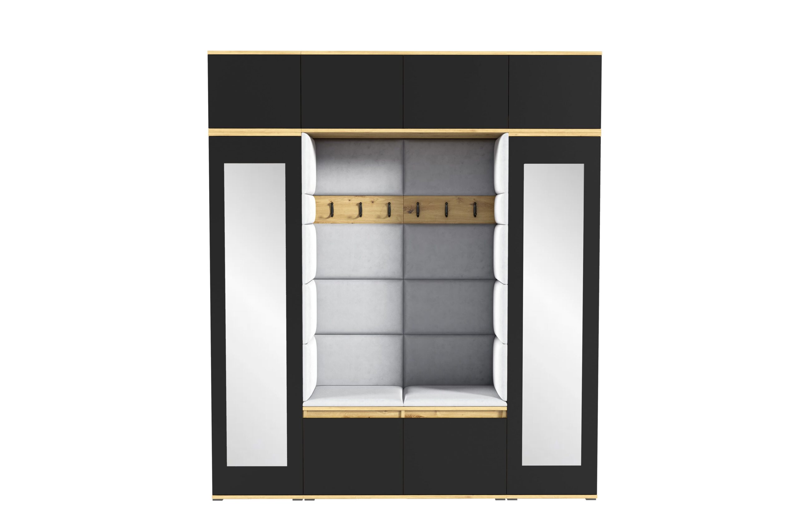 The Emi Wardrobe – Version 32 is a spacious and modern hallway furniture set designed for larger entryways that require both generous storage and elegant design.