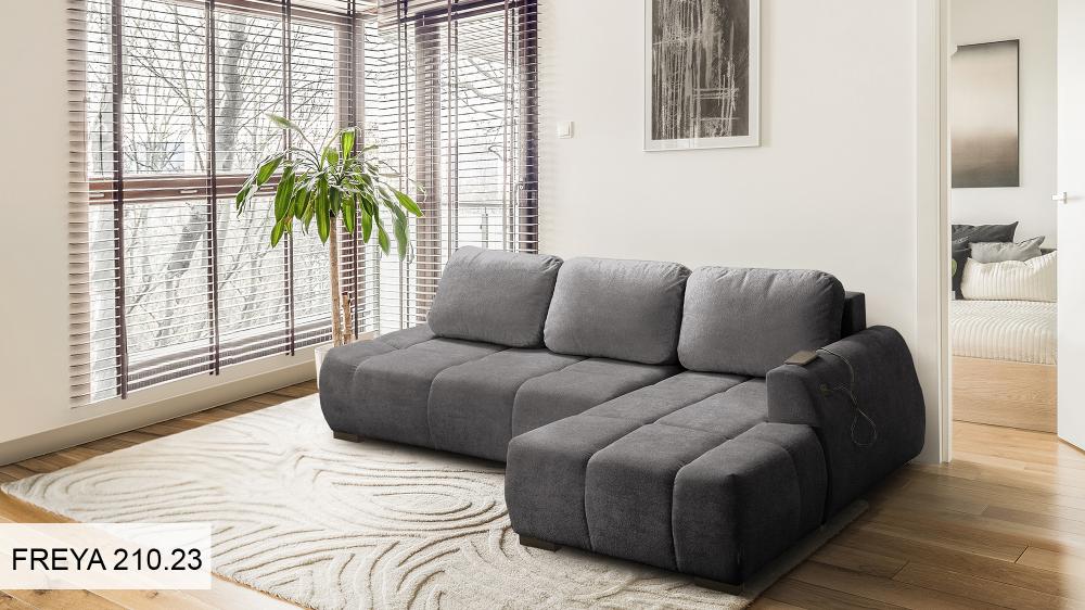 Introducing the FRESCO corner sofa, a masterpiece of modern design and unparalleled comfort, perfect for any contemporary living space. This stylish and functional piece is designed to enhance your home with its thoughtful features and superior craftsmanship. The corner sofa shown in the photo is right-hand facing.