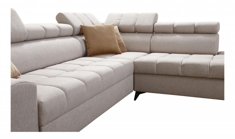Introduce contemporary elegance and supreme functionality into your living space with the GRECO IX Modern Corner Sofa. This sophisticated sectional is designed to offer unparalleled comfort and adaptability, featuring a robust construction and thoughtful details tailored for modern living. The corner sofa shown in the photo is right-hand facing, but you can choose your preferred orientation upon order.