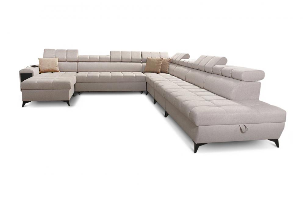 The GRECO XIII boasts an innovative design, including a functional chaise lounge with ‘crocodile’ hooks, allowing it to transform into a daybed or serve as a separate seat. These hooks can be neatly hidden beneath the furniture when not in use. Customise your comfort with 8 adjustable headrests, providing optimal support for every user. This GRECO XIII corner sofa is available in a wide range of premium fabric upholsteries, allowing you to perfectly match your interior decor.