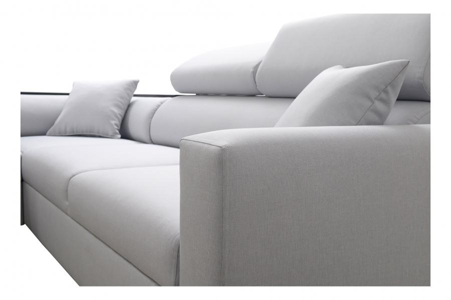 The Loretto IV Corner Sofa easily transforms into a spacious sleeping area measuring 210 cm x 127 cm. While the color and structure of the sleeping surface are typically chosen randomly, there is an option to have the sleeping area manufactured in the same color as the main sofa upholstery.