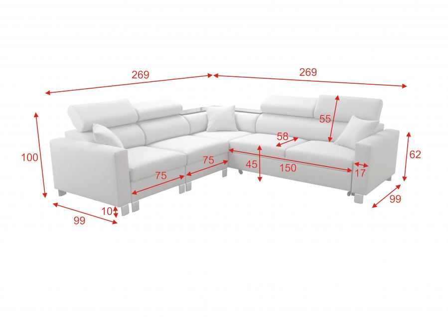 Designed for comfort and functionality, the Loretto IV Corner Sofa boasts the following dimensions: