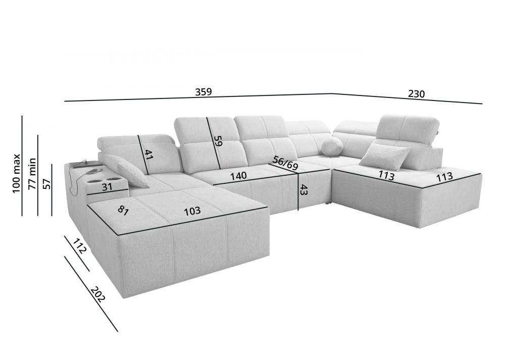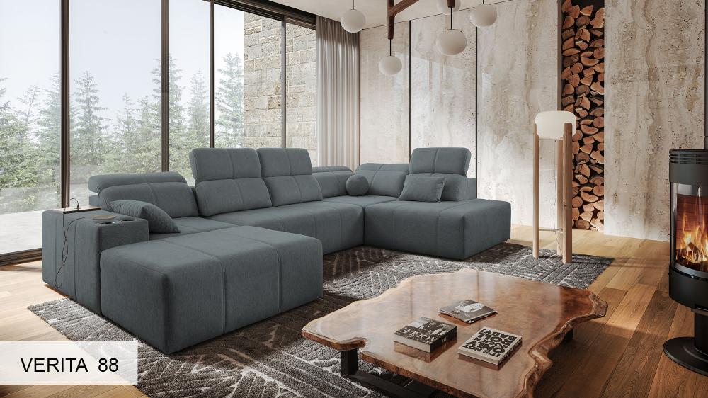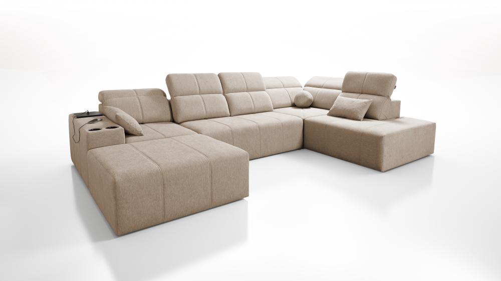 Introducing the extraordinary Mindy VI corner sofa, a masterpiece of modern design and functional elegance, perfect for enhancing any contemporary living space. This versatile corner sofa offers unparalleled comfort and smart features, making it an ideal choice for families and entertainers alike.