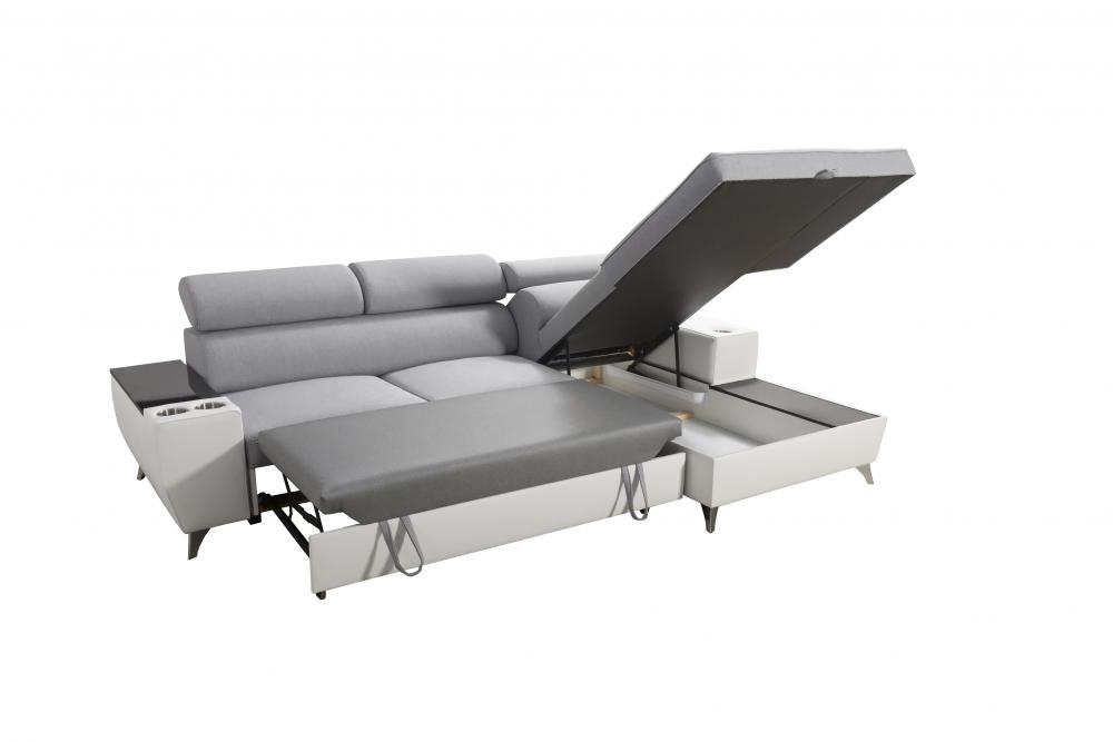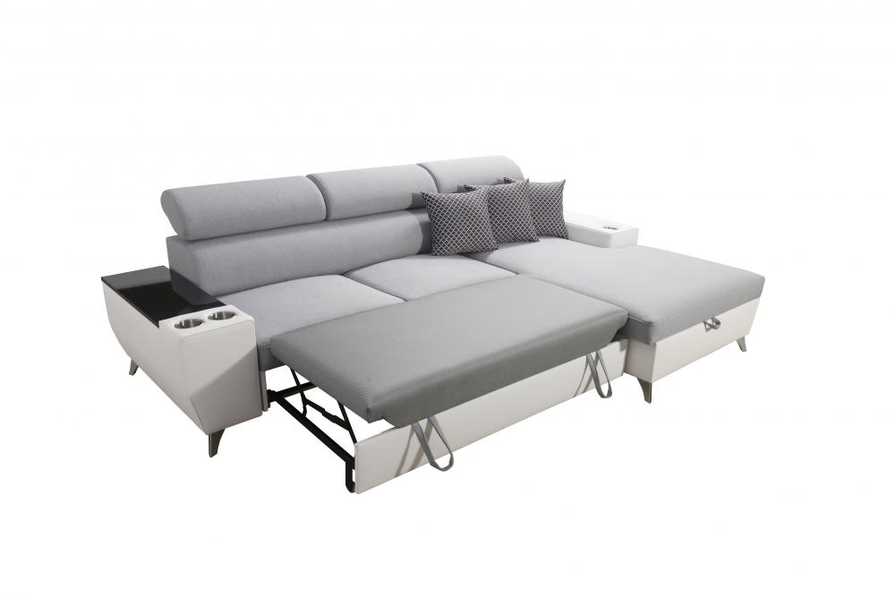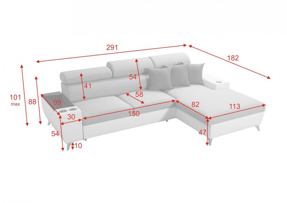 Experience unparalleled comfort with the MODIVO I MAXI, meticulously crafted to elevate your relaxation. This high-class furniture piece is built on a reinforced wooden frame, combined with chipboard, and features durable wavy springs alongside hardened T-30 foam for superior support and longevity. The modern corner sofa boasts three individually adjustable headrests, allowing you to find your perfect lounging position. Integrated into its thoughtful design is a convenient storage container, ideal for tidying away blankets or pillows, and an openable bar feature, perfect for entertaining or keeping essentials close at hand.
