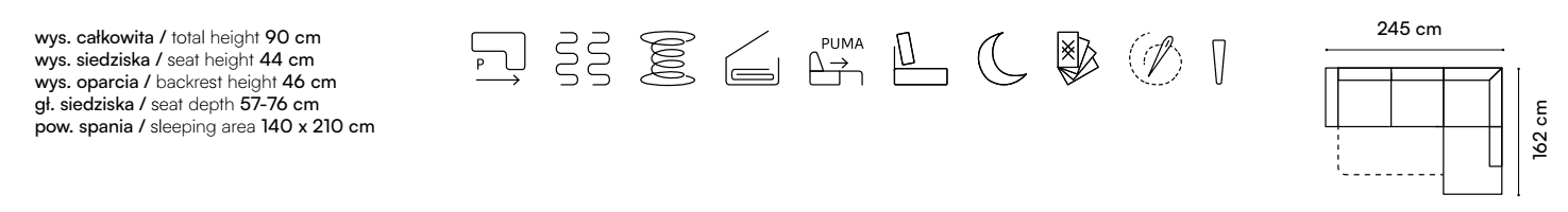 - Modern corner sofa with PUMA opening system
