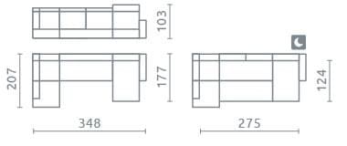 Sleeping area: 124 × 275 cm