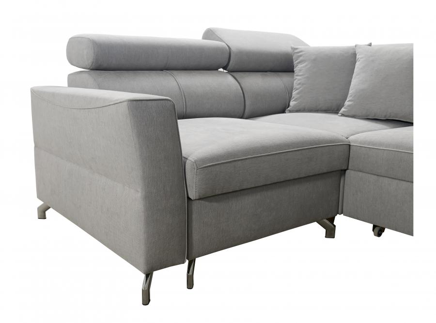 This elegant corner sofa is a protected community design, registered with the Patent Office of the Republic of Poland, ensuring its unique style and quality. The pillows visible in the photo are included free of charge.