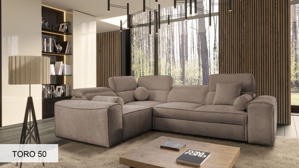 The VITO II Corner Sofa is built on a robust wooden frame, meticulously combined with high-quality chipboard for lasting durability and stability. The seating features a reliable wavy spring system, providing consistent support and comfort. Each seat is generously filled with 10 cm of T-30 hardened foam, ensuring a firm yet comfortable sit that retains its shape over time. This model is exclusively available in a wide selection of premium fabrics, ensuring a perfect match for your interior.